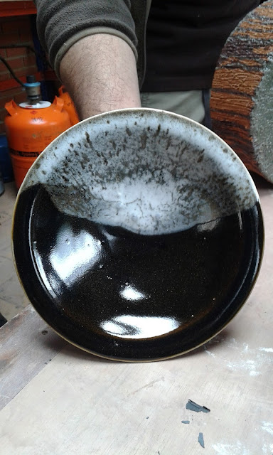 Piezas elaboradas, por Jose, en Gres beige de Vicente Díez, Pasta refractaria negra de Sio y Tierra de Buño roja "vestidas en los tres casos con una base de esmalte Tenmoku y un esmalte Shino con arcilla blanca.